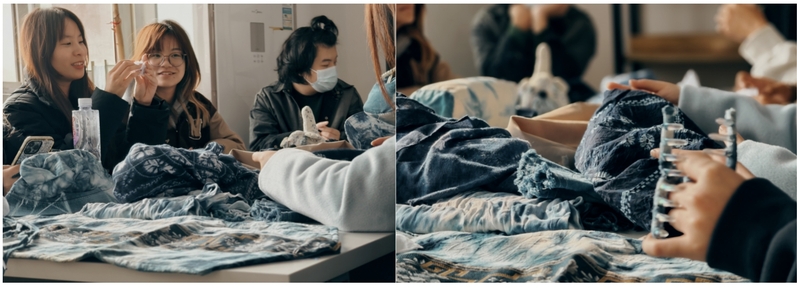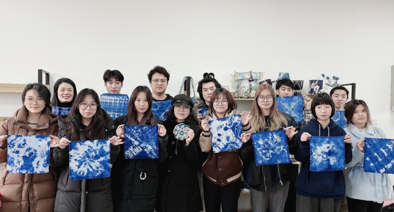 工作室龚老师表示:“组织这场体验活动,旨在为学生架起连接传统与现代的桥梁。非遗是创作灵感的鲜活源泉,期待学生汲取扎染精髓,在艺术海洋中闯出独树一帜的创作方向。”
