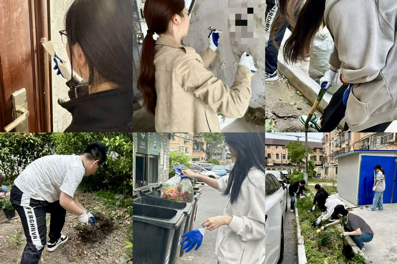 在这个绿意盎然的春季,我们走进有着三十多年历史的听南居委。斑驳的墙面上层层叠叠的牛皮癣小广 告,以及拄着拐杖在楼道间小心翼翼侧身让行的老人,让我们真切触摸到老龄化社区治理的艰难。当我们握起铲刀与扫帚时,终于懂得基层二字不只是文件里的词汇,而是布满岁月划痕的扶手、是渗入砖缝的油墨、是老人浑浊眼眸里闪烁的期待。