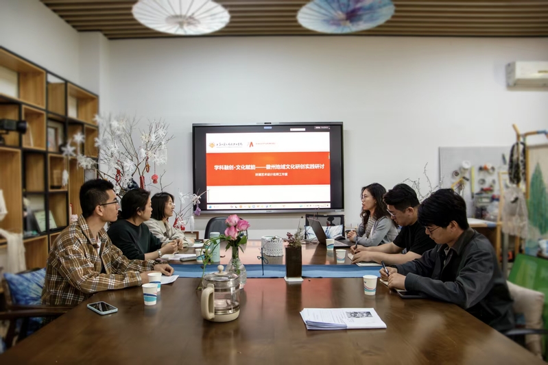 为深化专业建设与教学改革,推动学科交叉创新与文化传承赋能,4月30日,环境艺术设计名师工作室在学院李宪锋院长的学术引领下,成功举办“学科融创·文化赋能”主题研讨活动。本次活动由工作室负责人和水英教授主持,郑舒文、王玉、王南奇、何孟闰、王李喆等骨干教师参与研讨,会议聚焦人文景观采风课程教材建设、教学成果奖孵化及首届“当AI遇见非遗”赛事推进三大核心议题,为学院高质量发展注入新能。