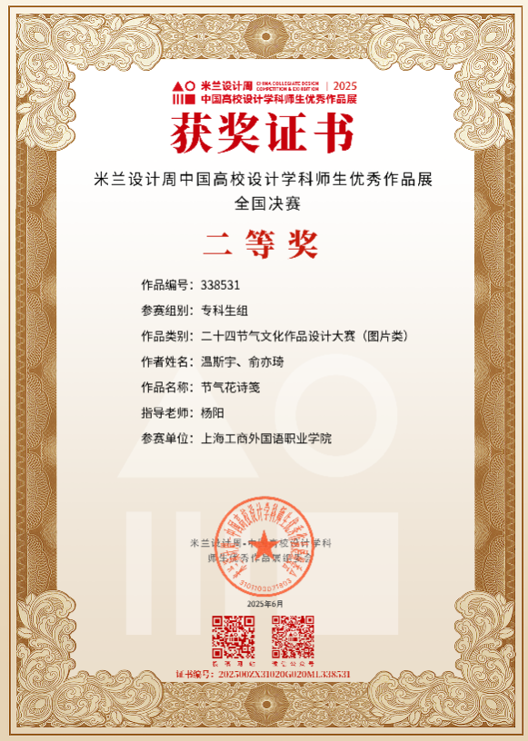 近日,2025 年第九届米兰设计周 —— 中国高校设计学科师生优秀作品展评审结果陆续揭晓。艺术设计与传媒学院师生表现亮眼,斩获 5 项国家级奖项,其中二等奖 1 项、三等奖 4 项。在省级评选中,共荣获 34 项奖项,其中一等奖 4 项、二等奖 14 项、三等奖 16 项。