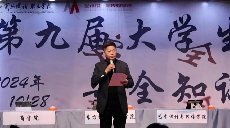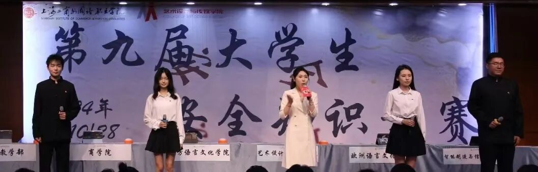 为进一步夯实学校的各项安全工作,增强广大师生的安全防范意识和应对突发事件的能力,上海工商外国语职业学院在2024年10月28日晚17:30于中校区四号楼四百人报告厅举办以“我的安全我做主,学校安全共分担”为主题的第九届大学生安全知识竞赛。
