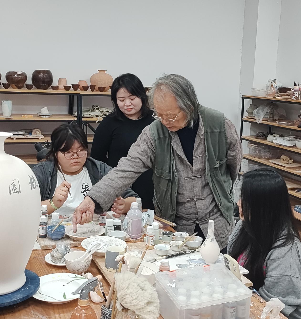 当素白瓷板遇见淋漓墨彩,当资深艺术大师遇见青春高校学子,一场关于非遗传承的奇妙反应在校园内悄然发生。