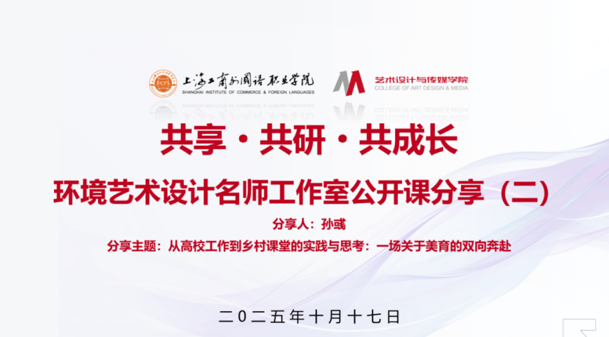 2025年10月17日,环境艺术设计名师工作室第二期公开课分享会在艺术设计与传媒学院李宪锋院长指导下落幕。工作室负责人和水英教授担任主持,校级学员孙彧老师以“美育双向奔赴”为核心主题,结合浙江衢州开化县大溪边乡中心学校支教实践,为工作室学员呈现了一堂兼具实践深度与情感温度的“行走美育课”。​