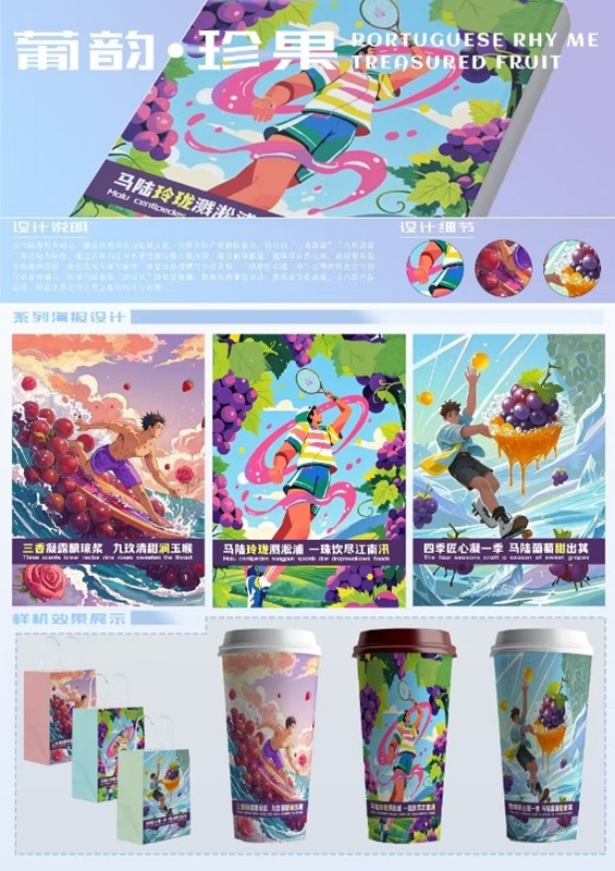 在暑期对上海市嘉定区马陆镇的实地调研中,我们发现当地虽坐拥以“马陆葡萄”为代表的优质物产,却在品牌塑造与传播渠道上存在明显短板,导致其市场知名度与产品价值未能完全匹配。为破解这一“有资源、无响量”的困境,我们项目组决定以设计介入,创作了一套兼具视觉美感与文化内涵的系列海报,旨在为马陆葡萄打造鲜明的品牌标识,探索地方特产推广的新路径。