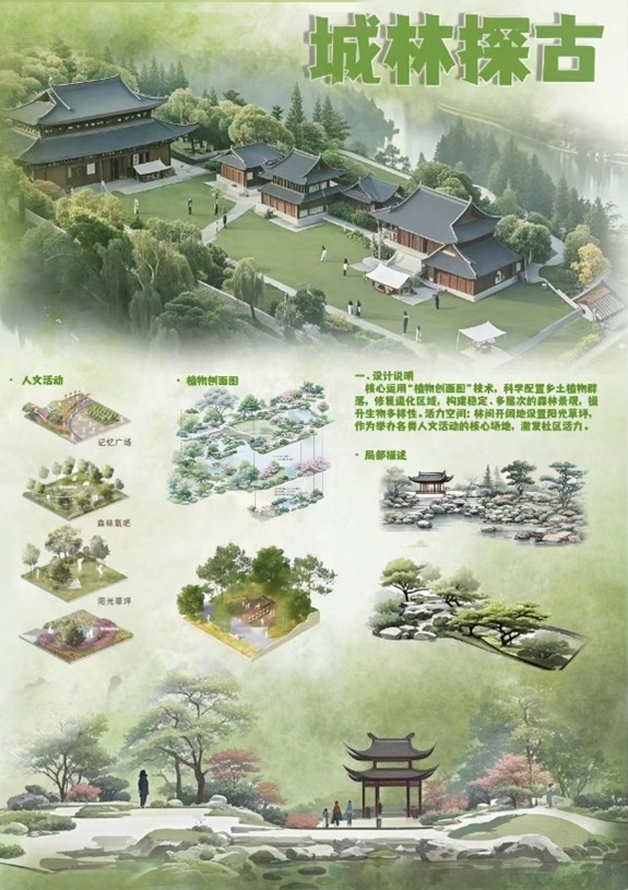 通过本次暑期综合素质实践,我们深刻感悟到科技与人文融合的魅力。结合何老师课堂上所讲的“AI赋能空间设计”方法的启发下,我们完成了“城林探古”园林景观设计方案。我们尝试让AI成为洞察历史文脉与生成设计灵感的伙伴,最终打造了一个既承载城市记忆、又充满智能交互体验的园林空间,真正实现了传统意境与现代科技的有机共生。