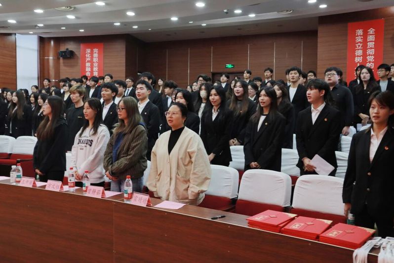 由学院分团委书记黄二涛老师、霍晴晴老师和浮菁玉老师为新任团学干部授予工作证,希望大家共同努力,为学院发展注入新鲜的血液。