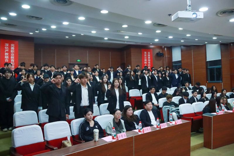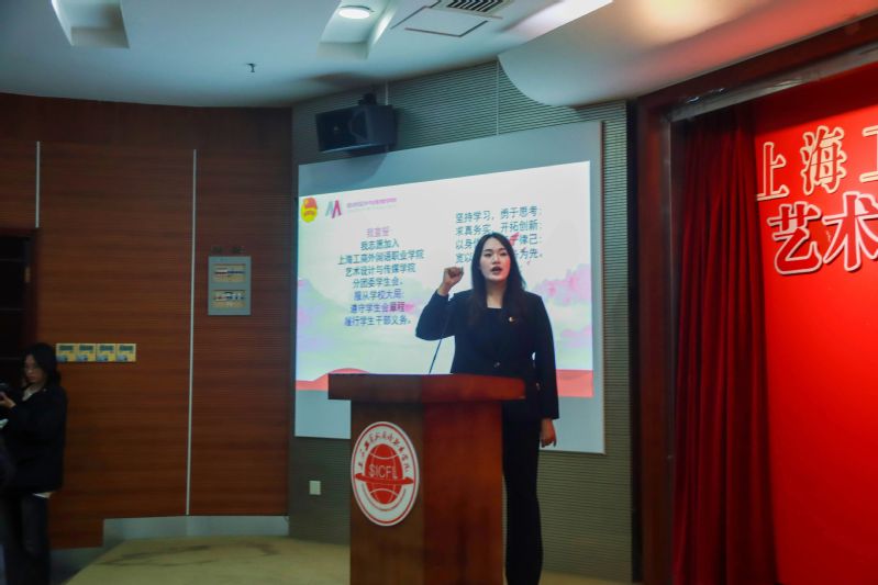 在隆重严肃的氛围下,学生会全体成员举起右拳,由新一届学生会副书记赵嘉禾带领团学骨干进行庄严宣誓。
