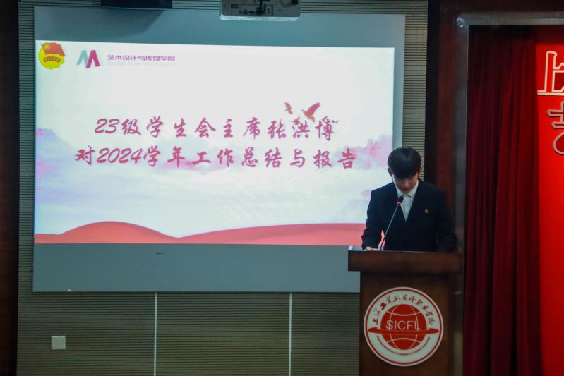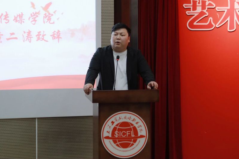首先,艺术设计与传媒学院分团委书记老师黄二涛老师上台发表致辞,他对上届学生会全体成员的辛勤工作和卓越贡献表示高度的肯定和最诚挚的感谢,并对新一届学生会寄予厚望,为师生做好服务、树立榜样形象、平衡工作与学习,为学院的发展贡献自己的青春力量。