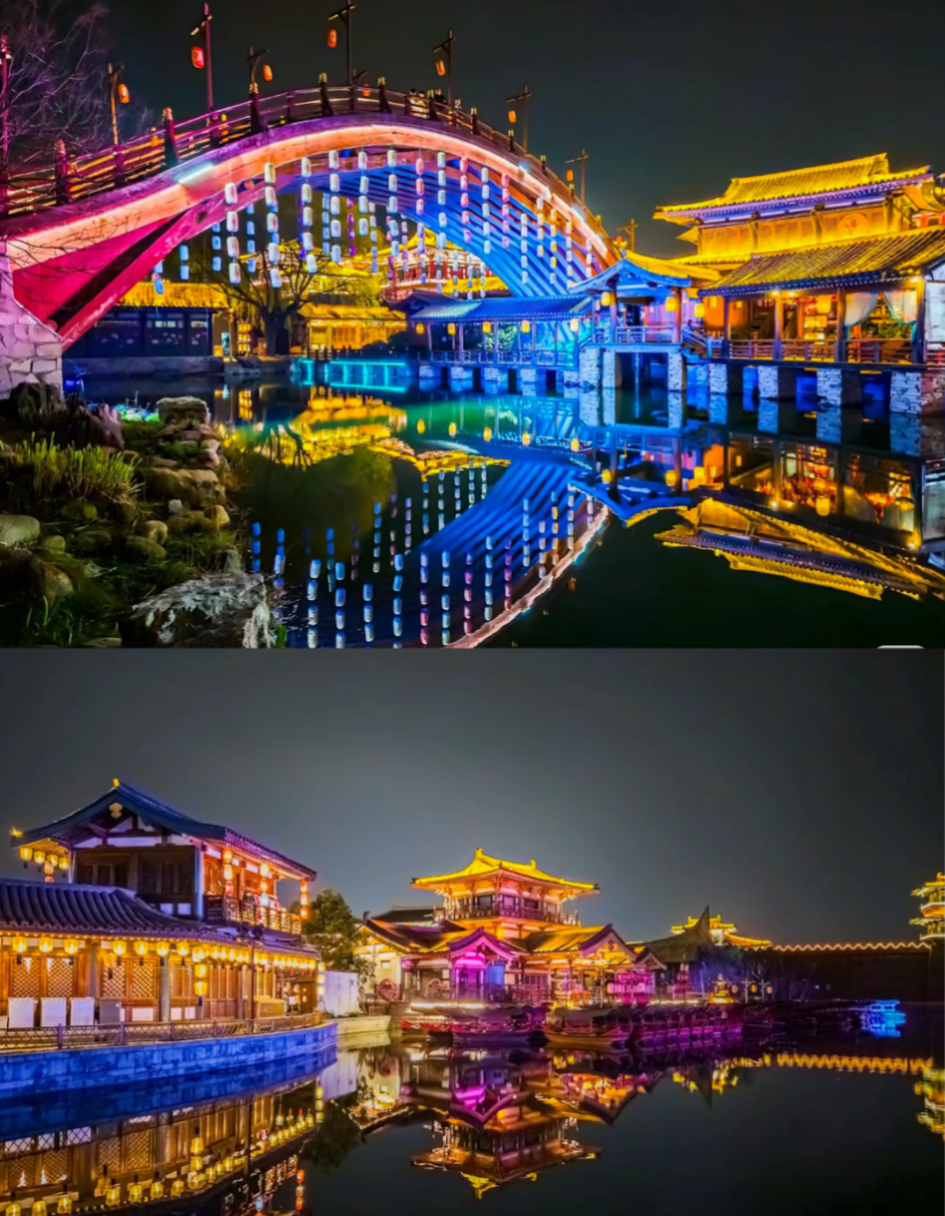 在唐城,盛唐风华扑面而来。飞檐斗拱、朱门金瓦,每一处建筑都在诉说历史的厚重;汉服翩跹、鼓乐齐鸣,文化的形与神在此具象呈现。我用镜头定格一场晨光中的延时,看阳光一寸寸洒上城楼,仿佛时光倒流,盛世重现。
