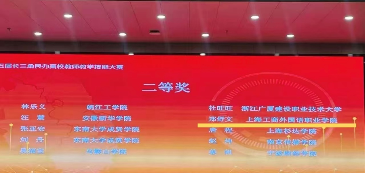 艺术设计(少儿美术)专业教师郑舒文副教授于11月7日至8日在上海师范大学参加第五届长三角民办高校教师教学技能大赛,本次大赛由上海市教育委员会、江苏省教育厅、浙江省教育厅、安徽省教育厅联合主办,上海市民办学校教师专业发展中心承办,覆盖长三角地区128所民办高校,汇聚众多教学骨干同台竞技。郑舒文老师在学校全方位的保障和助力下,凭借扎实的教学功底、新颖的教学设计和出色的现场表现脱颖而出,荣获大赛二等奖。此次获奖充分展现了我校青年教师优秀的专业素养与过硬的教学水平,是学校教师队伍建设成效的有力印证,将进一步推动校内教学质量提升。