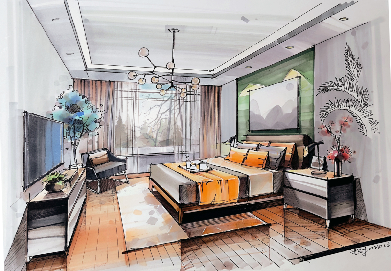 和水英 手绘《清音居空间表现》