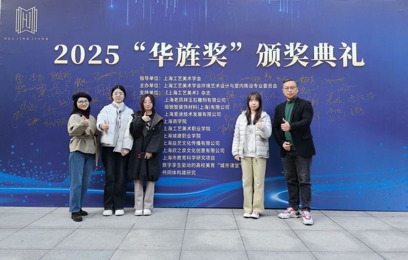 12月6日,由上海工艺美术学会、环境艺术设计与室内陈设专业委员会主办的第三届“华旌奖”颁奖典礼在上海工艺美术职业学院举行。我校艺术设计与传媒学院环境艺术设计专业师生斩获金奖2项、银奖4项、铜奖2项,在李宪峰院长统筹下,产教融合办副处长曾健教授、环艺骨干教师刘敏带领学生代表出席领奖。