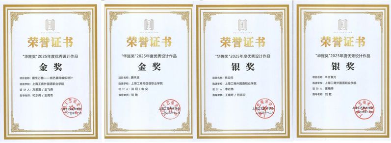 金奖作品为方紫萱、王飞燕的《雷生万物——线艺屏风编织设计》和洪阳、袁奕的《膳禾堂》;谢昕然等的《竹韵沪光》、洪阳的《青屿轩》等4项获银奖;肖盈盈等的《爪爪社交》、巫雯婷的《云崖栖》获铜奖,获奖表现居同类院校前列。