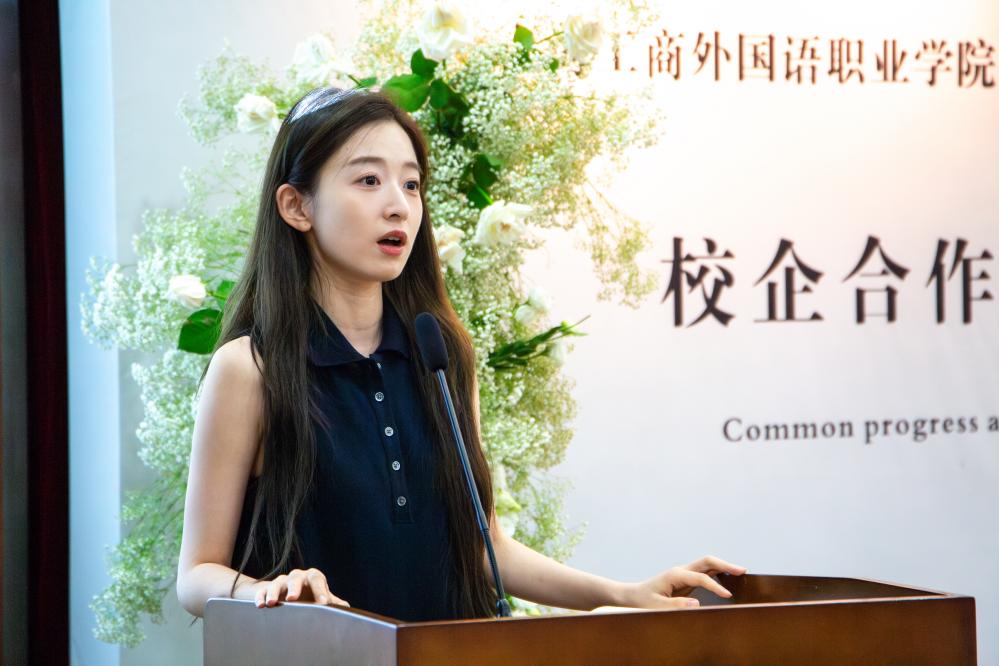 会上,八千文化传媒有限公司CEO陈志鑫与达人代表杨淇先后发表致辞。陈总从产业需求的角度,阐述了企业与高校合作共赢的愿景。公司作为上海本土新兴文化传媒企业,长期关注艺术传媒与数字内容领域的人才培养。此次合作将通过共建实训基地、项目化教学、实习就业直通车等方式,为学生提供真实行业案例与实践机会,同时为企业输送适配岗位需求的优质人才。达人代表杨淇则以自身经历给我们分享做自媒体的心得。两位企方的致辞既表达了对未来合作的美好期待,也为产教融合的深入推进注入了动力。