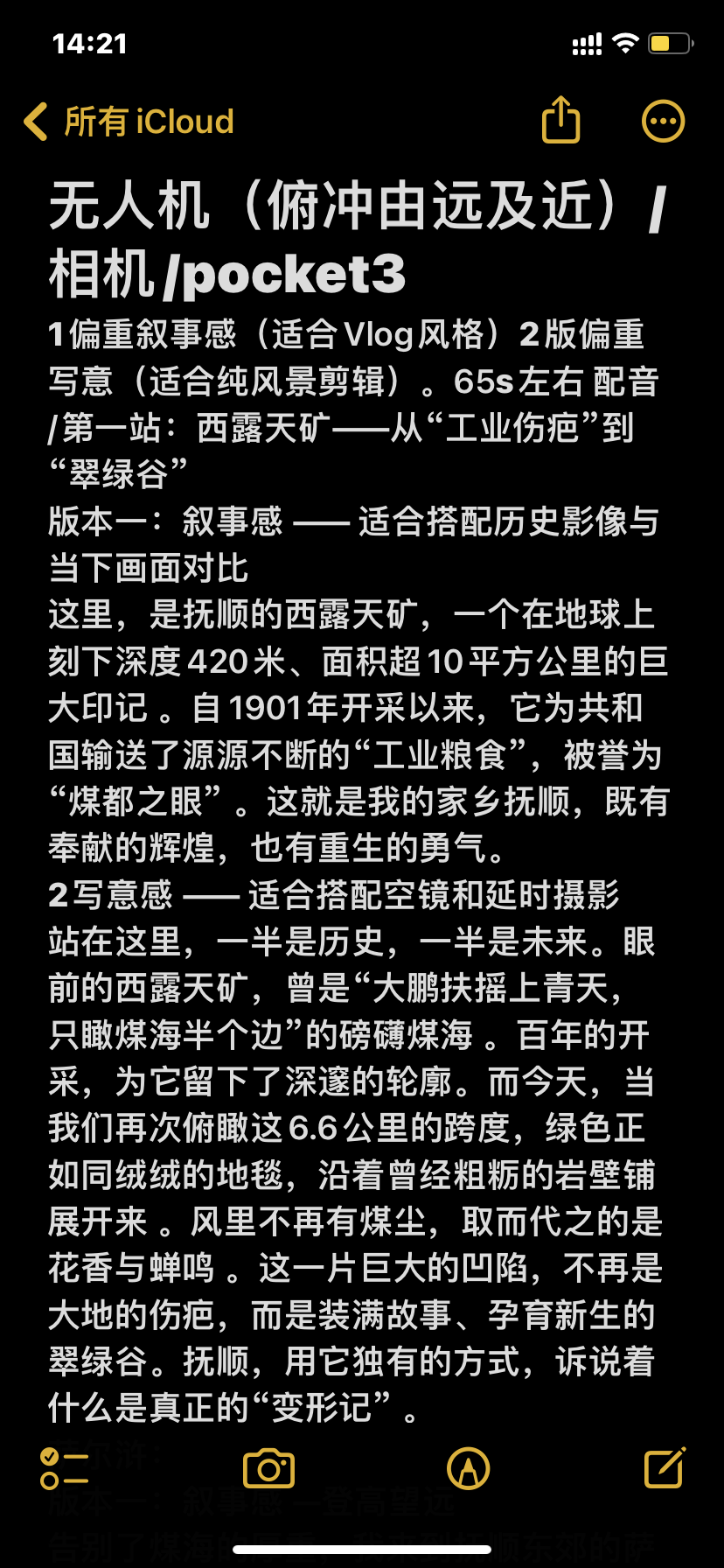 本次实践选题定位于我的家乡——辽宁抚顺。抚顺是一座因煤而兴的工业城市,有着“煤都”之称,同时也拥有秀美的自然风光。我希望通过两集短视频,展现家乡的AB面:一面是承载百年工业记忆的西露天矿,见证着历史的厚重与生态的蜕变;另一面是山清水秀的萨尔浒风景区,寄托着人们对自然的向往与休闲生活,也让更多人了解这座年代久远的城市。